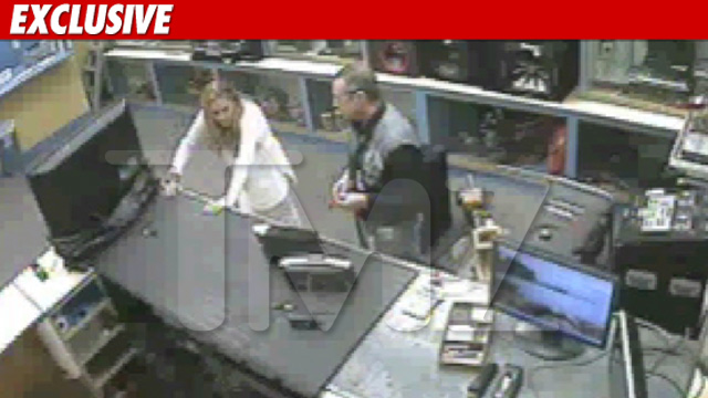 In the surveillance footage from the store obtained by TMZ, Brooke nervously and anxiously paces around the store while the employees check out the items.